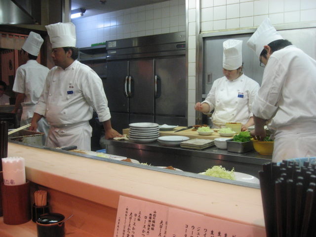 完全なオープンキッチンで、カウンターに座ると厨房が一望できる