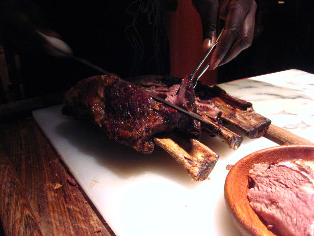 塊のまま串に刺し焼き上げる それを客席で、切り分けて提供する本場のスタイルそのまま
