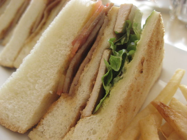 エビカツサンド同様クリスピーなトーストに、ベーコン・チキン・トマトなどを挟んだもの