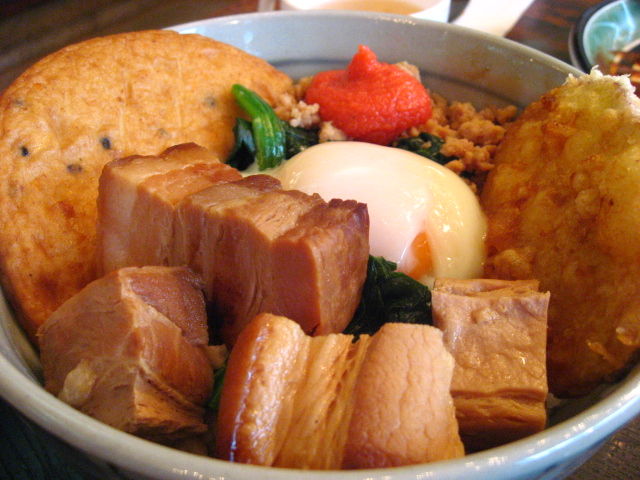 上野の「西郷どん」からもじったのであろうが、“サツマイモ”“薩摩揚げ”“明太”“鶏そぼろ”などなど、九州の食材がたっぷり乗っている面白い丼であった