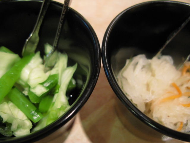 後に提供されるお膳には漬物が乗ってないので、サービスという良い別盛ってだけ