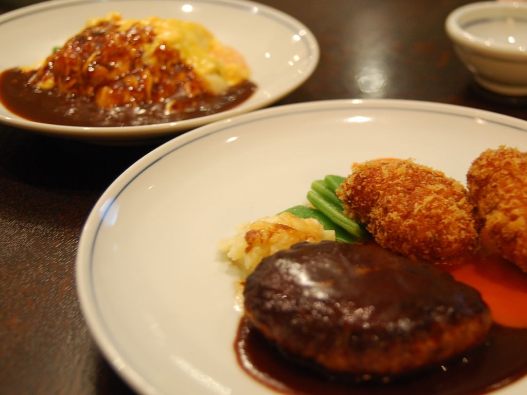 ワンプレートミックスってメニューがあって、オムライス、ハンバーグ、エビフライ、カニコロッケ・・・ などから2つを選ぶと言うモノ