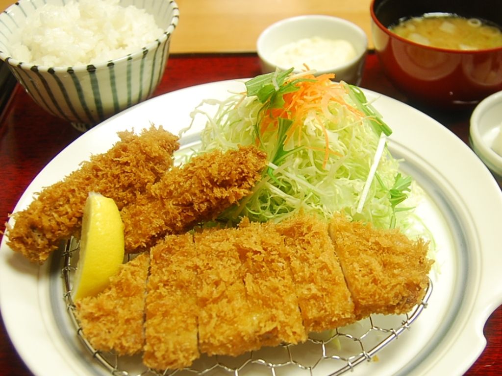 牡蠣フライとロースかつを一緒にいただける欲張りさん向けのメニューであります