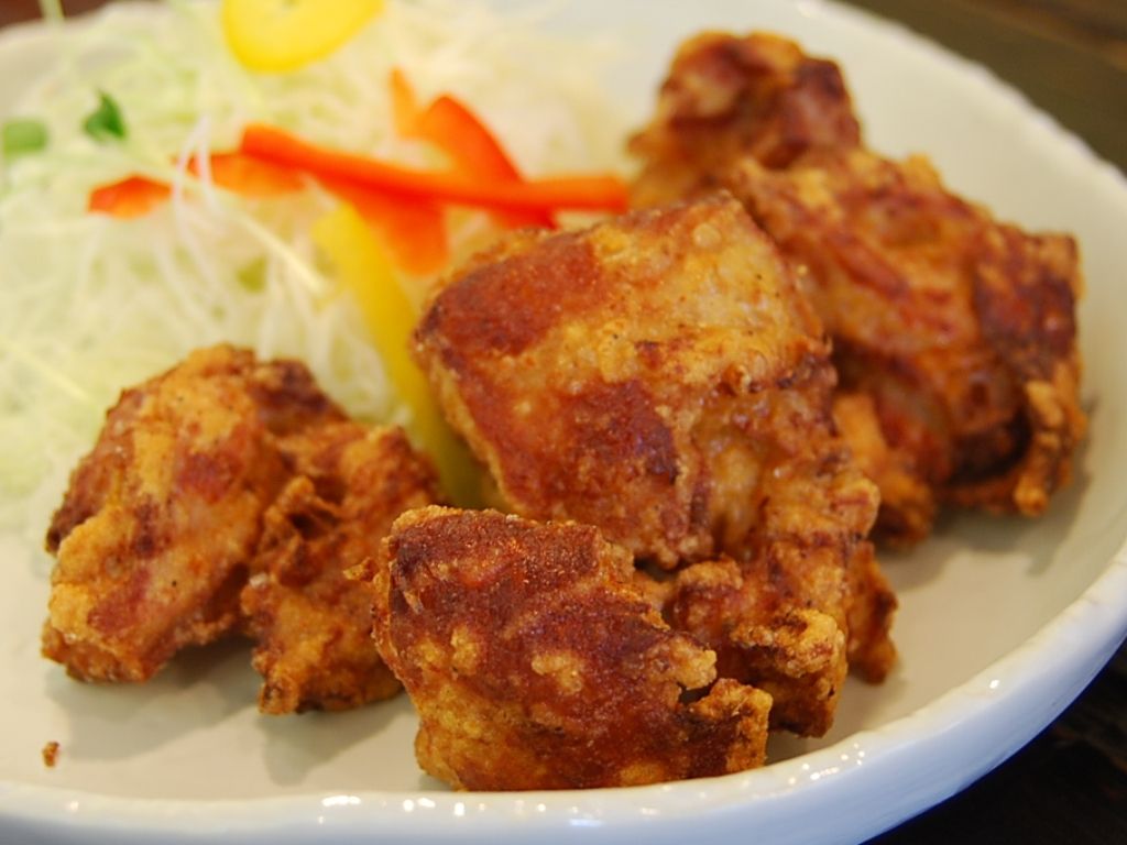 醤油ベースの下味に漬け込み、味が染みたものをカラッと揚げる