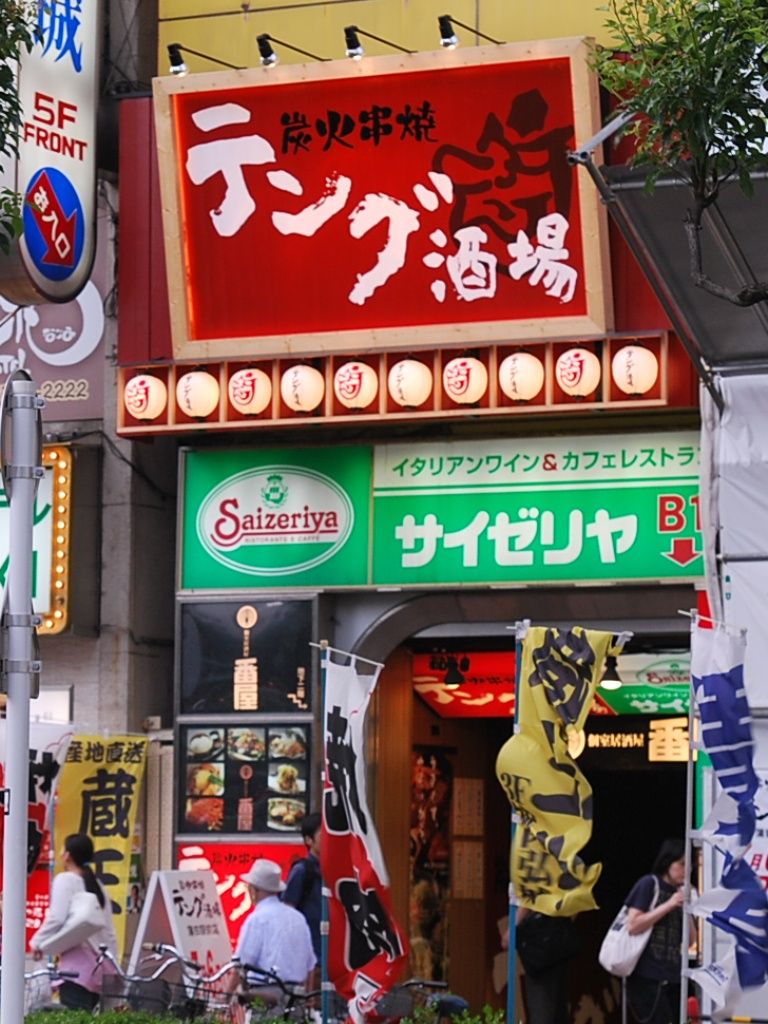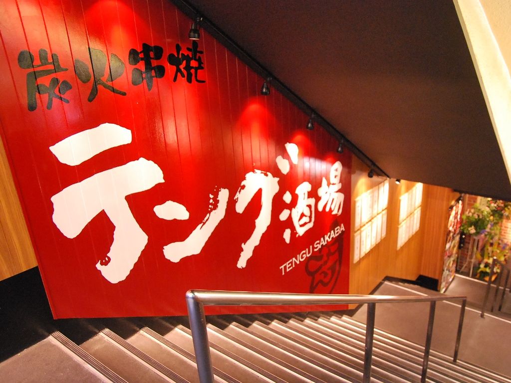 駅のエレベーターを降り、左右を見わたすと「テング酒場」の大きな看板が目に入り、探すまでも無かった