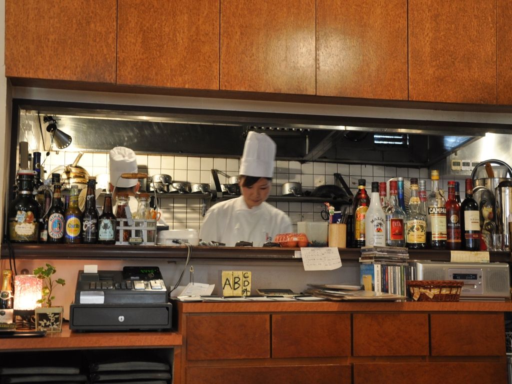 20人も入れば、いっぱいになってしまうお店の中央に、セミオープンの厨房