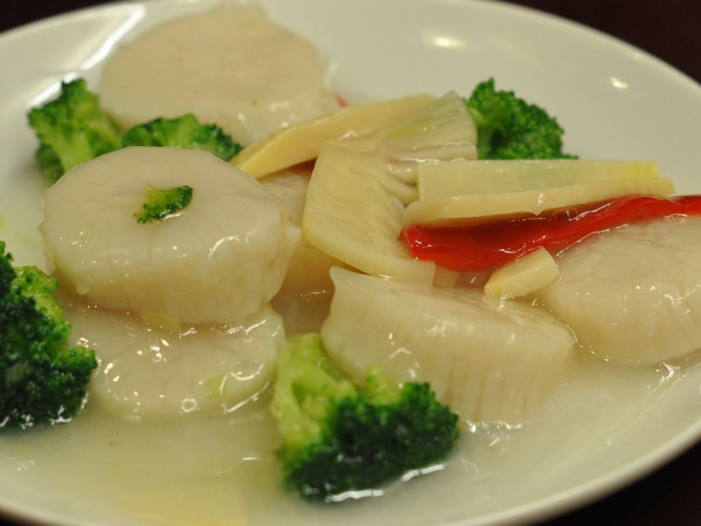 ブロッコリーや竹の子と一緒に塩味で炒められております