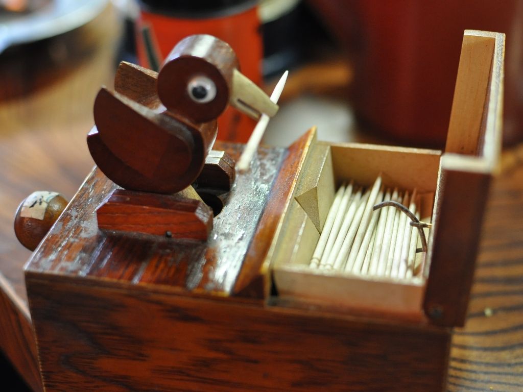 卓上にあった、カラクリ式の楊枝入れ