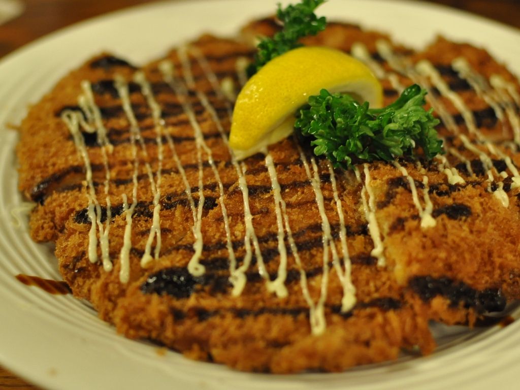 紙のように薄く叩いて延ばした豚肉にパン粉をつけて揚げたモノ