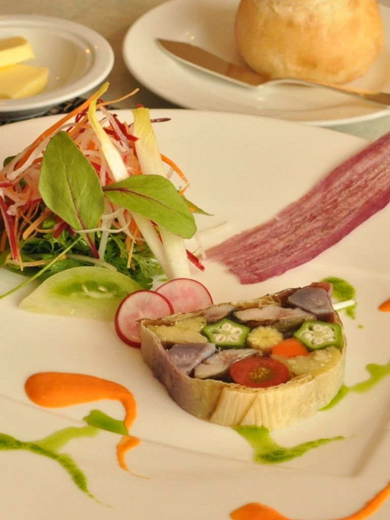 お皿に絵を描くように美しく盛り付けられたオードブル