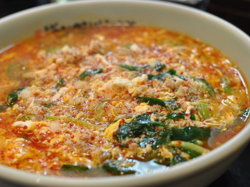 最後に、沸騰してるスープに溶き玉子を加えソレをかき混ぜ出来上がり