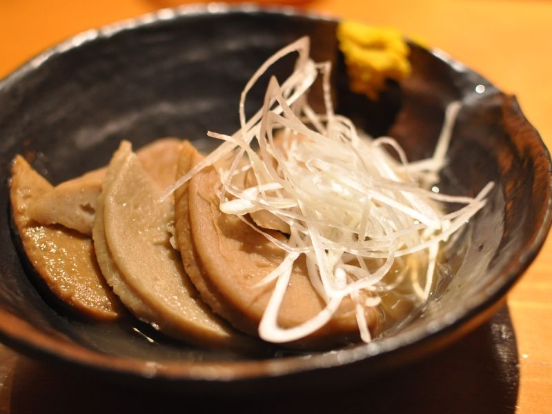 じゃこと岩海苔のサラダと静岡黒はんぺんをつまみにいただき、うどんが来るのを待つことに・・・