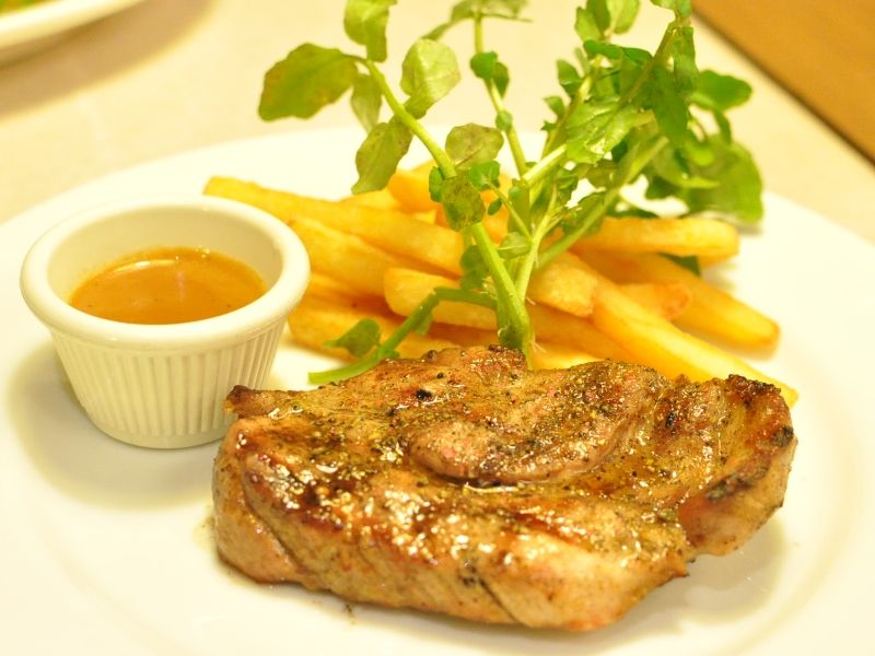 メインは、豚肩ロースのステーキ