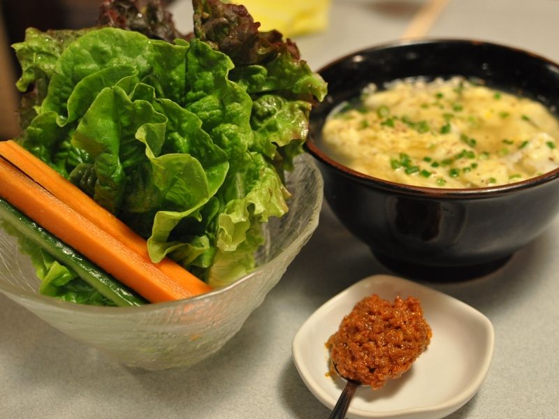 コレに特製の味噌を付けお肉を巻いていただくと、食べた後のお腹が軽いような気がするのですが・・・ 気のせい?