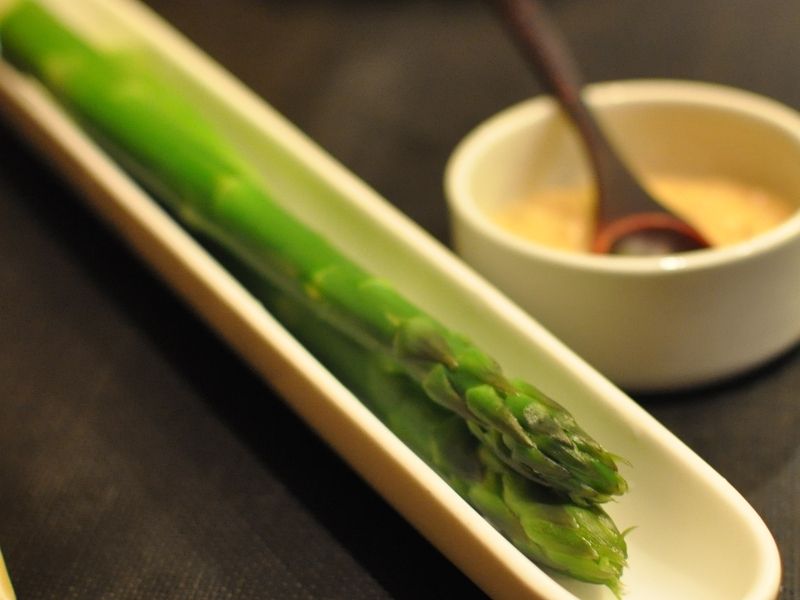 旬のアスパラ、こだわり卵の玉子焼き