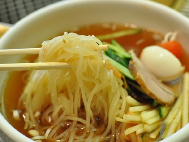 細く半透明な、噛み切れないくらいにコシがある麺
