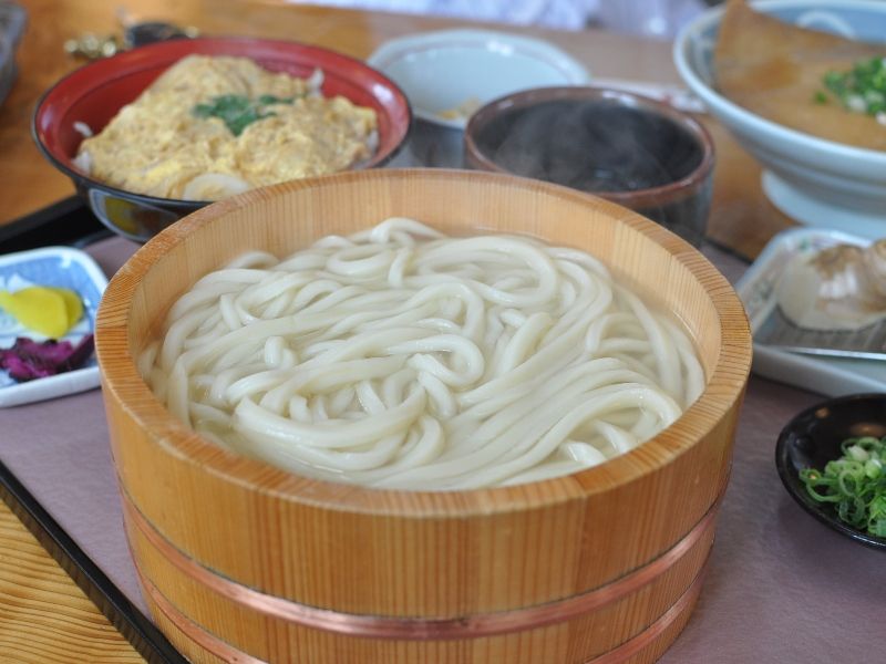 注文してから釜揚げするので10分くらい待つことになるのですが、茹で上げモチモチ しっかりとしたコシがあるうどんであります