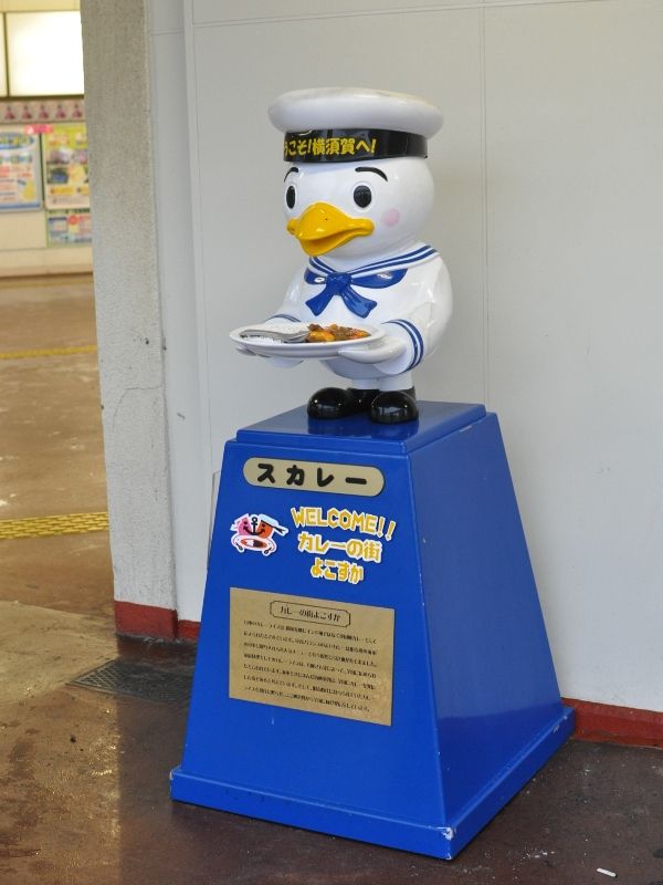 駅にはこんなにかわいい人形が海軍カレーをアピールしているではないか・・・