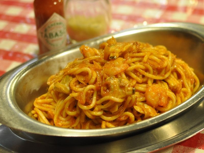 挽肉とオニオンをトマトソースでじっくりと煮込まれたソースは甘めですので、タバスコをちょっと多めにかけた位がちょうど良い感じ