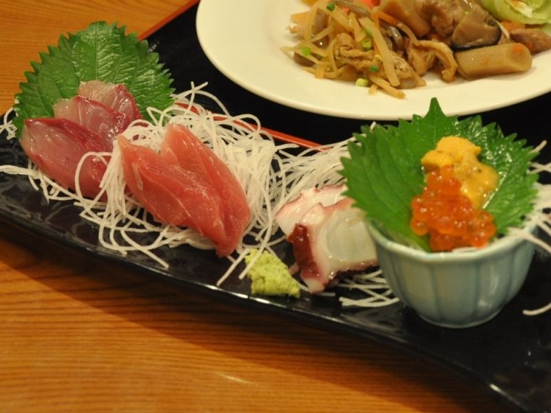 地鶏の唐揚げも捨てがたいところではありましたが、ワタシが選んだメイン料理はお刺身の盛り合わせ