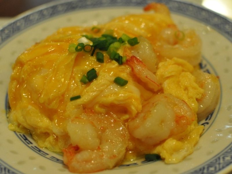 プリプリ海老がフンワリ玉子で包まれて、ほんのりごま油が香る優しい味付け