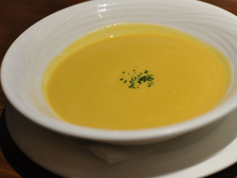ワタシはオニオンスープ、同行者はパンプキンスープであります