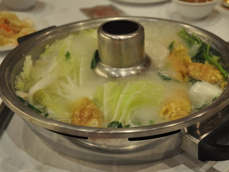 白菜やほうれん草、それにワンタンなどと馴染みの食材をどんどんしゃぶしゃぶしていく