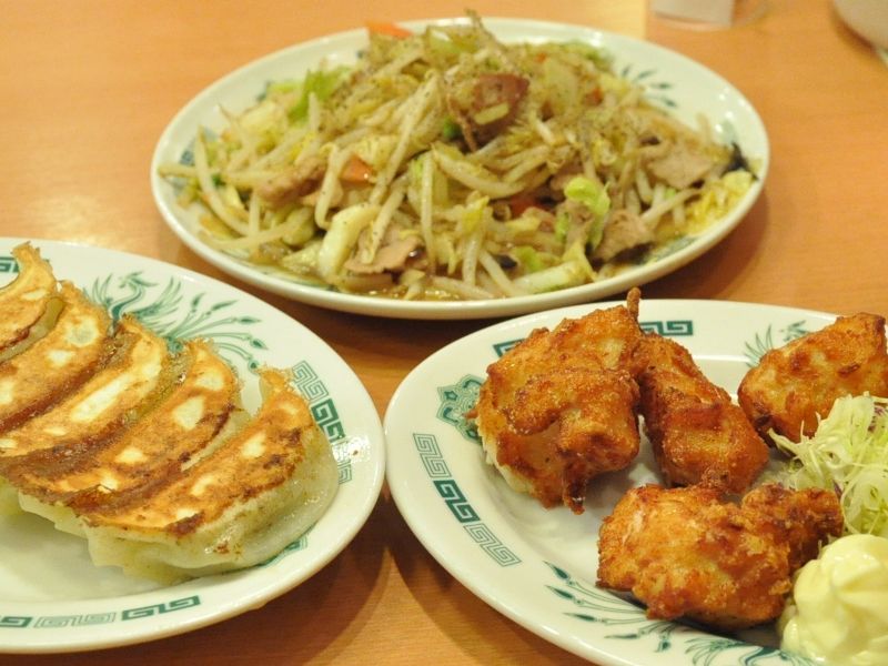 野菜炒めに餃子と唐揚げ