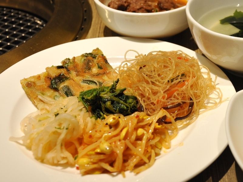 お昼の時間には、ビュッフェが用意されていまして、キムチやナムル、チャプチェや牛筋の煮込みなどをいただくことが出来ます