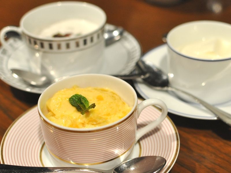 フレッシュマンゴープリン 、とろとろ杏仁豆腐、タピオカのココナッツソース