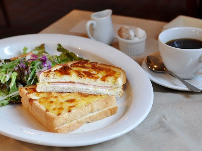 クロックムッシュをいただきましたが、ハムとチーズをサンドしたトーストの上に、更にチーズが乗せられ、それをオーブンで焼いたものでありました
