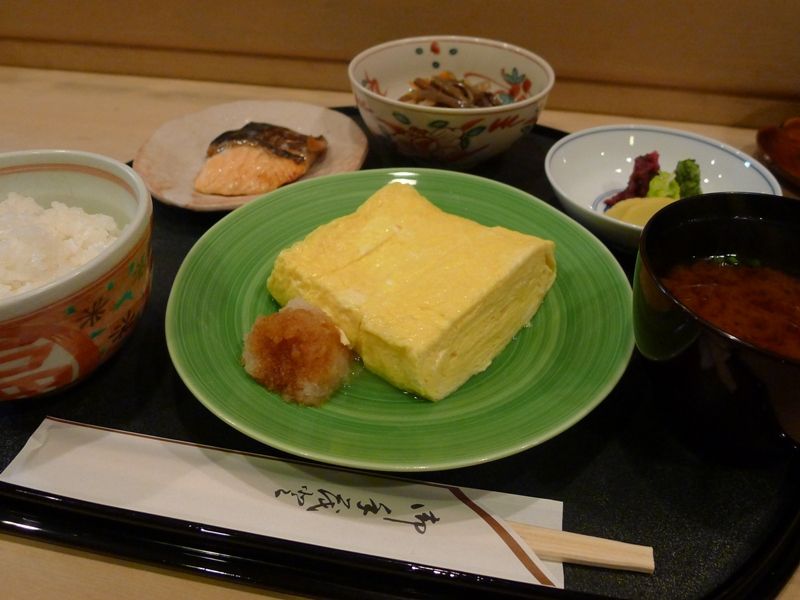 お昼のメニューは、焼き魚と煮魚、それに出汁巻玉子の3種類