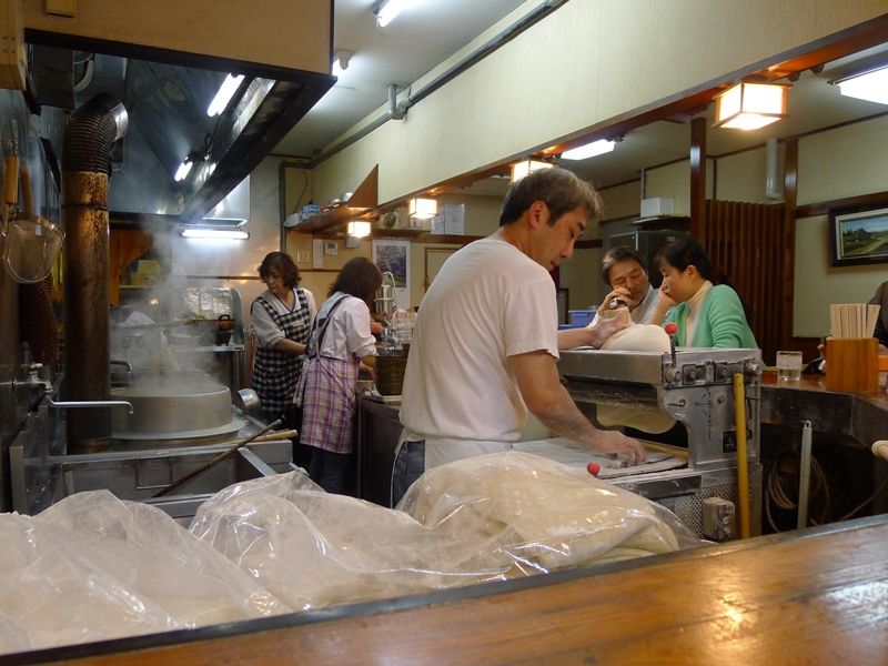 目の前に製麺機があって、そこで伸ばされ切られる麺を見ているだけで美味しそう