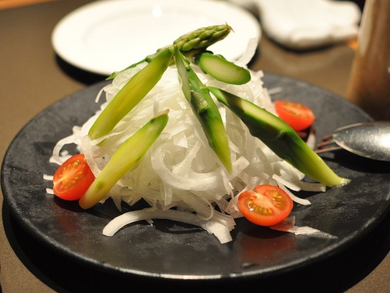 先ずはお勧めメニューから、“アサリのワイン蒸し”と“新玉ねぎとアスパラのサラダ”をいただくことにいたします