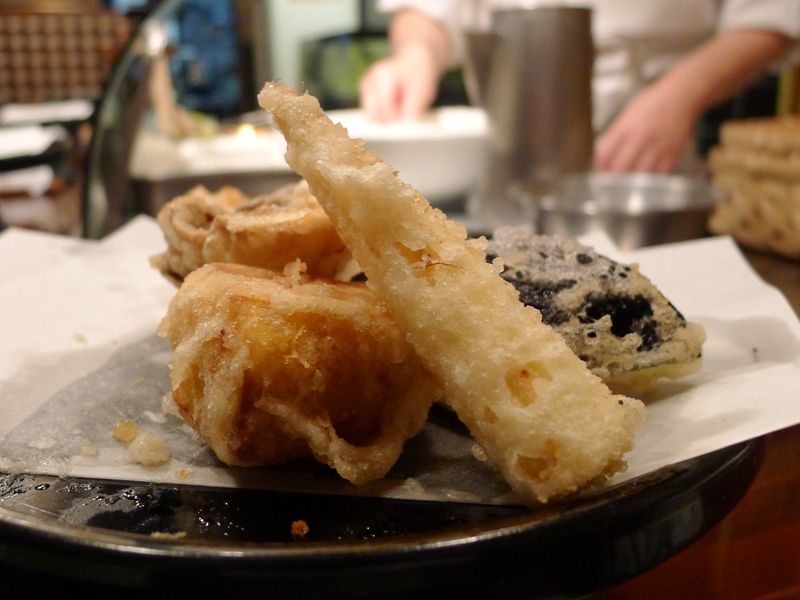 運良く残っていたカウンターの1席をいただきまして、目の前で揚げていただける天ぷらを堪能することにいたします