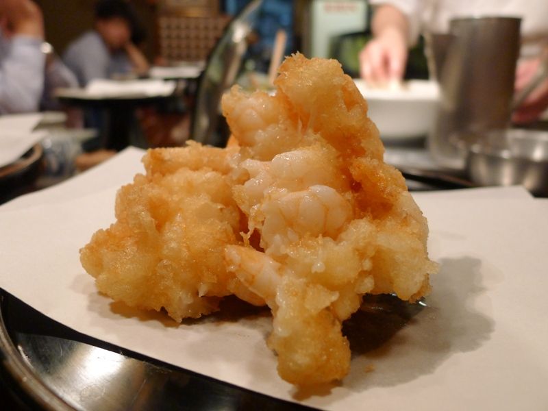 海老のかき揚げから始まります