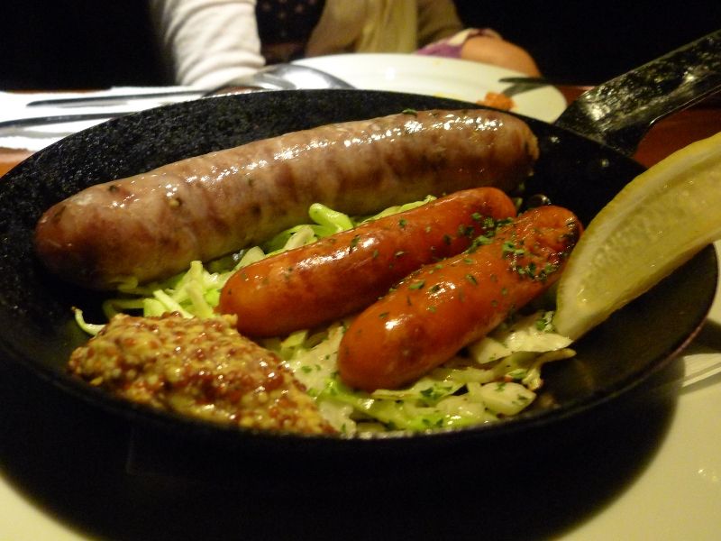 この太いソーセージは四匠豚という豚肉が使われているらしく、プリッと弾ける皮とギュッと締まったお肉がとっても美味しいモノでありました