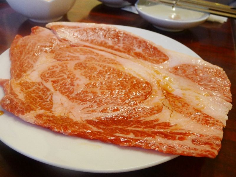 壺漬けのカルビや、サシが美しい上カルビもいただいたら、こちらの名物商品のひとつである“リブロース1枚焼き”をいただくことにいたします