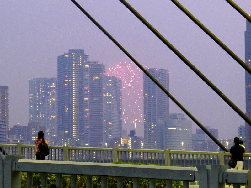 帰るタイミングで東京湾の花火大会が始まりまして…