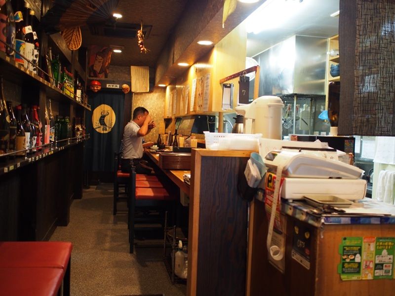 うなぎの寝床のように奥に長細いお店でありまして、その奥の方に厨房があって、その厨房と向かい合わさるカウンター席と、入り口近くには4名掛けのテーブルが4つ