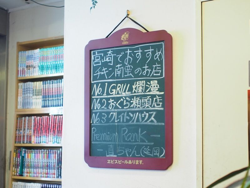 壁に飾られた黒板には、本場宮崎での美味しいチキン南蛮ランキングが書かれていまして…