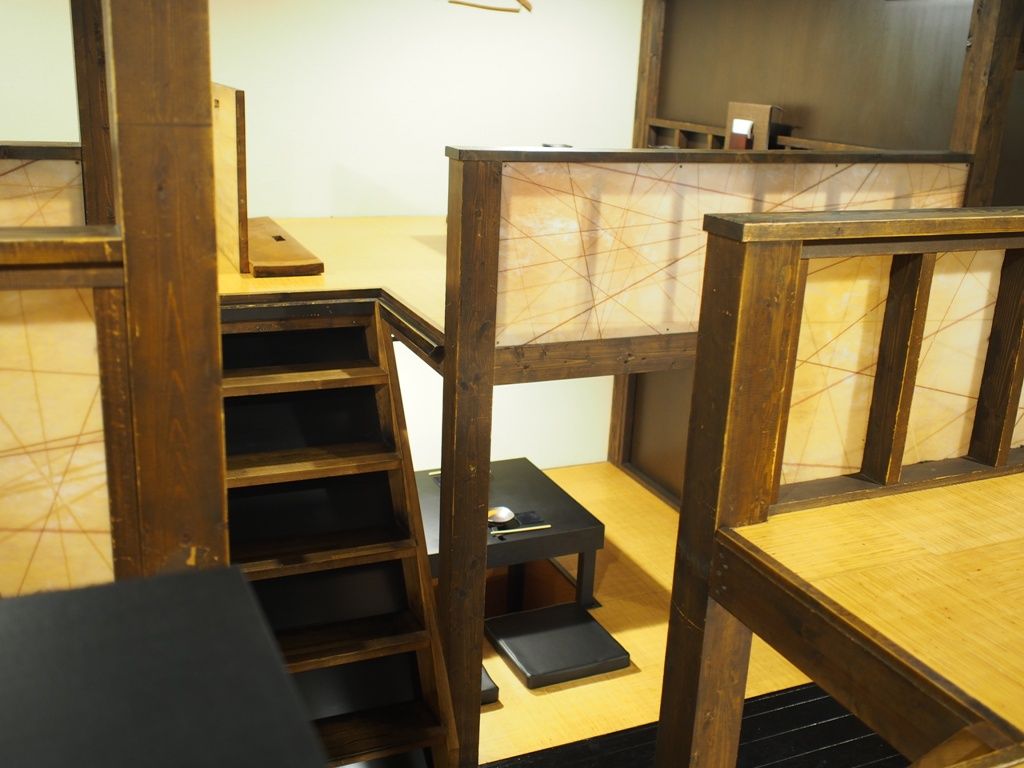 エレベーターで4Fへと向かいますと、比較的天井高があるお店に2段ベッドのような客席が配置されていまして…