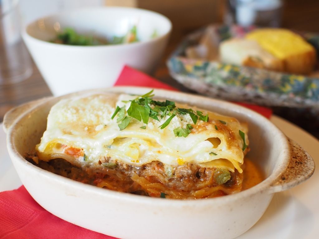 薄く板状に延ばしたパスタにミートソースとホワイトソースを交互に重ねてオーブンで焼き上げる料理なのでありますが、ここのホワイトソースにはたっぷりの野菜も仕込まれていまして…