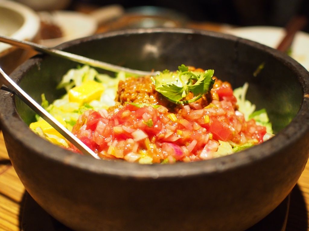 ピリッとした辛味と酸味がマッチしたサルサソースと挽肉をご飯と混ぜ合わせていただく料理なのですが、それを石焼として提供するなどのオリジナリティーも加えられていますね