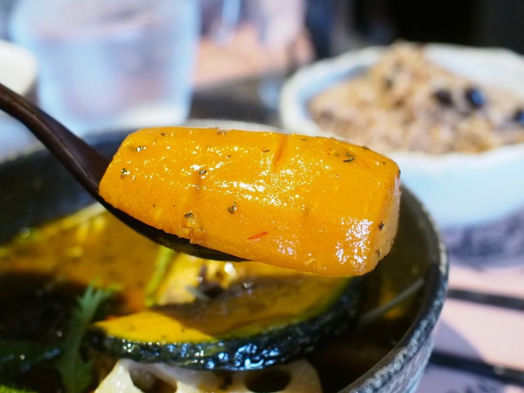 そんなお店でいただいたのは、いち推し商品であろう"たっぷり野菜と熟成チキンのスープカレー"