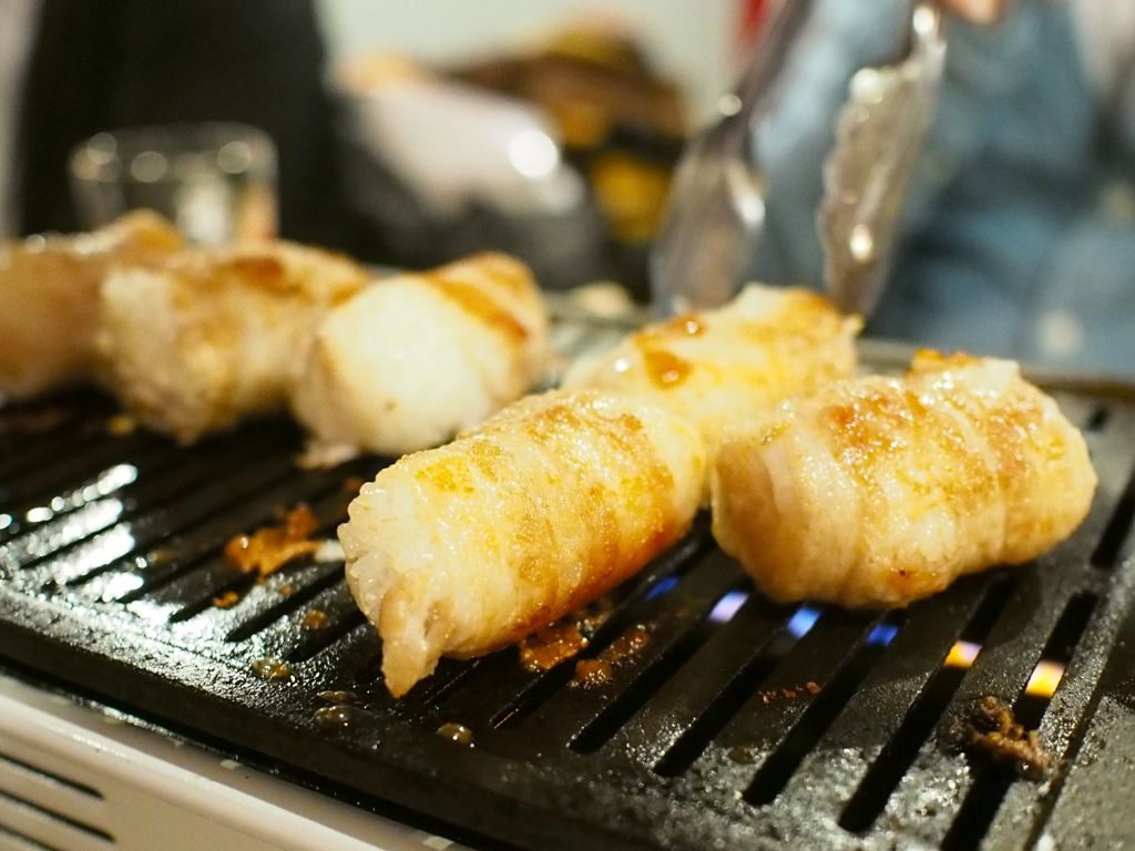 お店の方が客席に置かれたコンロで丁寧に焼いてくださいまして…