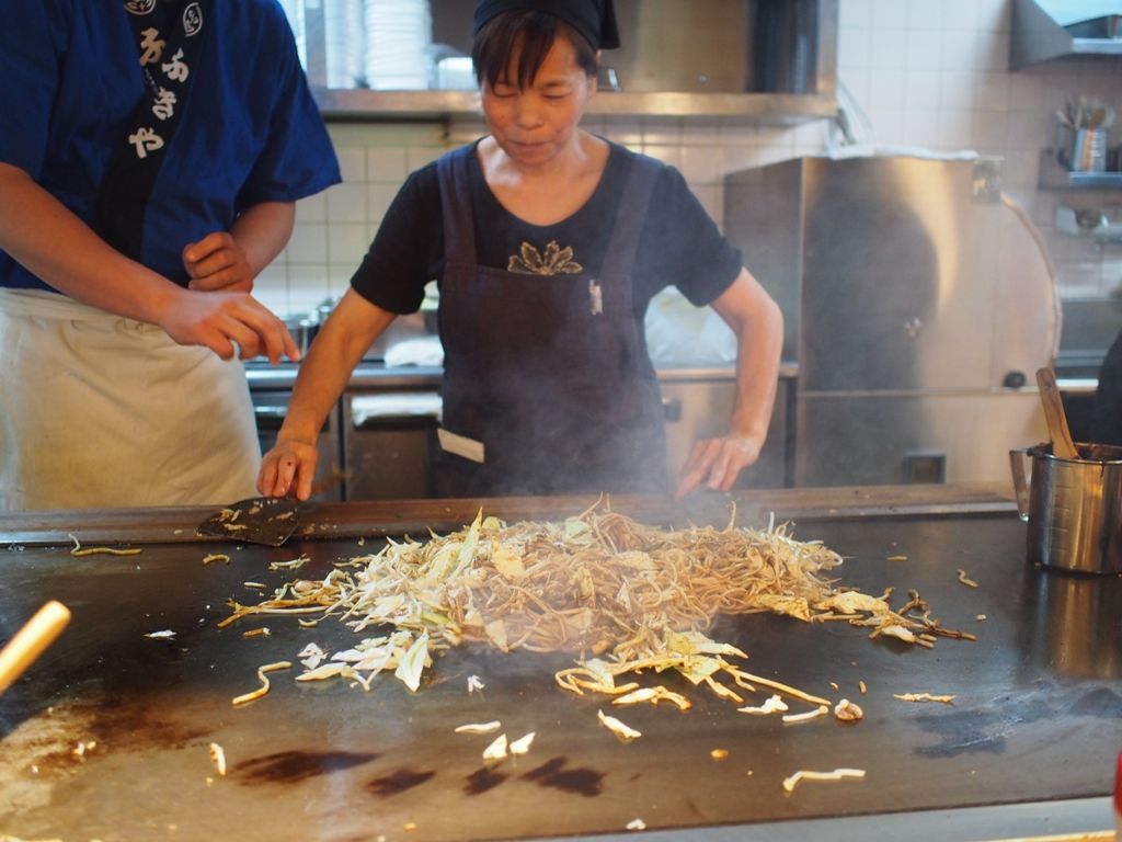入口に近いテッパンではお好み焼きを、そして奥にあるこちらでは焼きそばや焼き飯をメインに調理されているようですね
