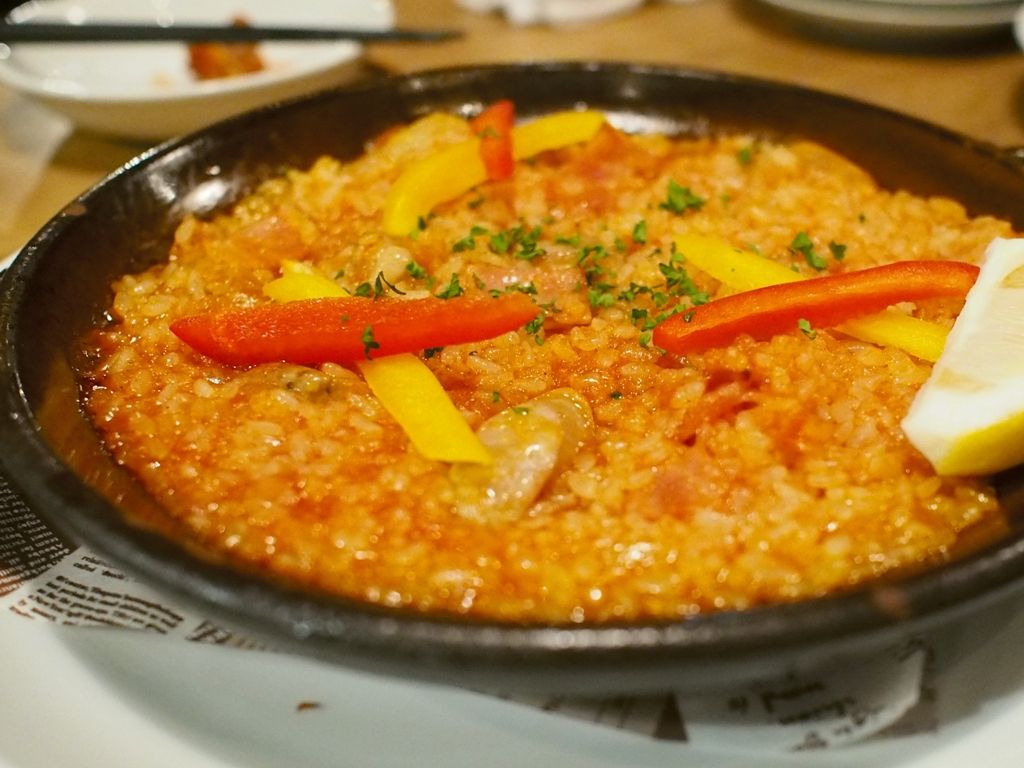 提供されたものはパエリアというよりもリゾットと言ったほうが良いモノでありましたが、お味はと言いますと、お米ひと粒ひと粒がモチッとしていて納得がいくモノでしたよ