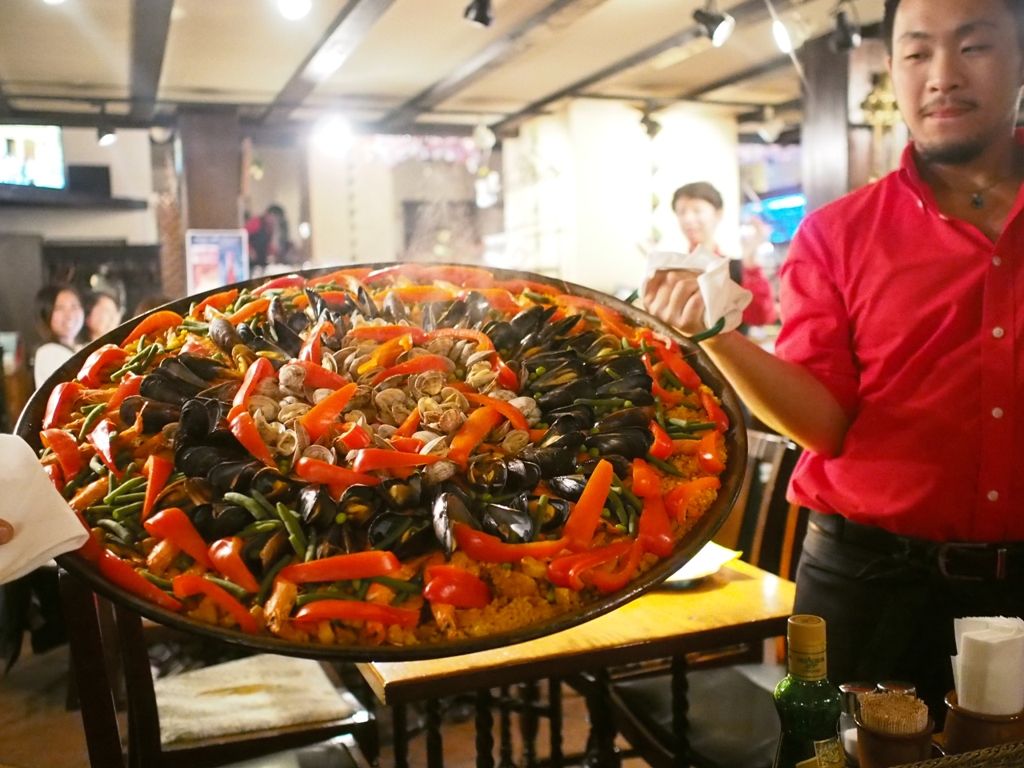 突然、鐘が打ち鳴らされ、何が始まるのかと思ていますと、大きな鍋で炊かれたパエリアを持ったスタッフが客席を回りはじめます