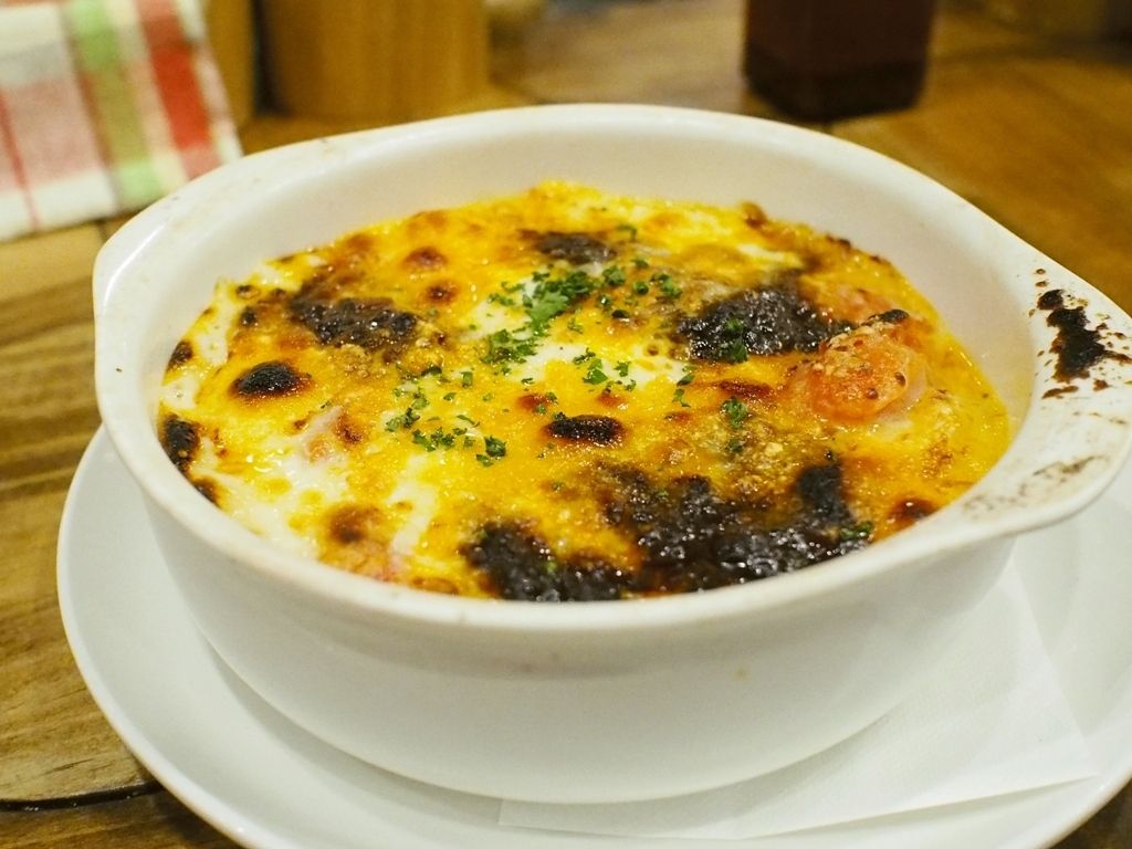 一人前ずつアルミパンでベシャメルを温めた後にオーブンで焼き上げる工程を目にして驚かされます